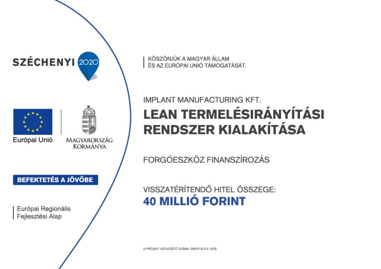 Projekt címe: Technológia fejlesztés az Implant Manufacturing Kft.-nél